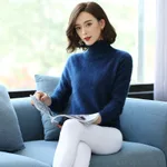 Turtleneck Pullover Short Loose Cashmere Knitted Mink Velvet