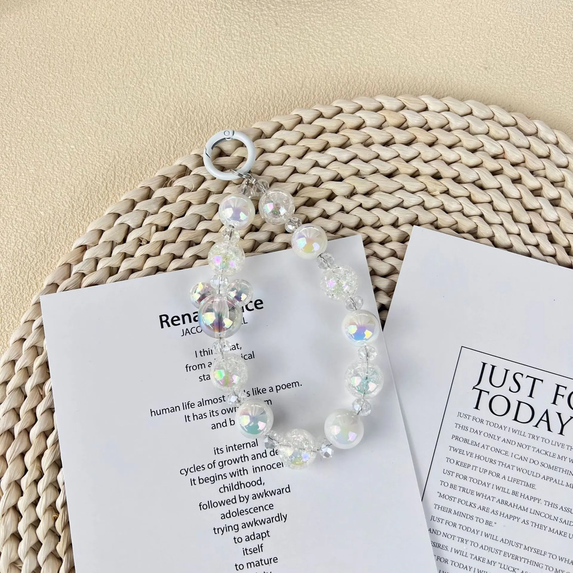 Two-tone Gradient Colorful Round Beads Car Key Ring - Transparent