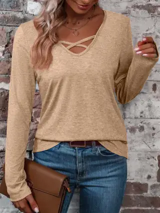 V-neck Cross Cotton Solid Color Minimalist Long Sleeve - Yellow