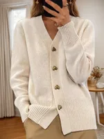 V-neck Knitted Sweater With Love Button Solid Long-sleeved Cardigan
