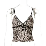 V-neck Leopard Pattern Crop-top Spaghetti-strap Small Tank Top Top -