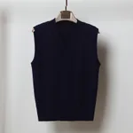 V-neck Sleeveless Sweater Vest Black Top Outerwear Thin Knitwear -
