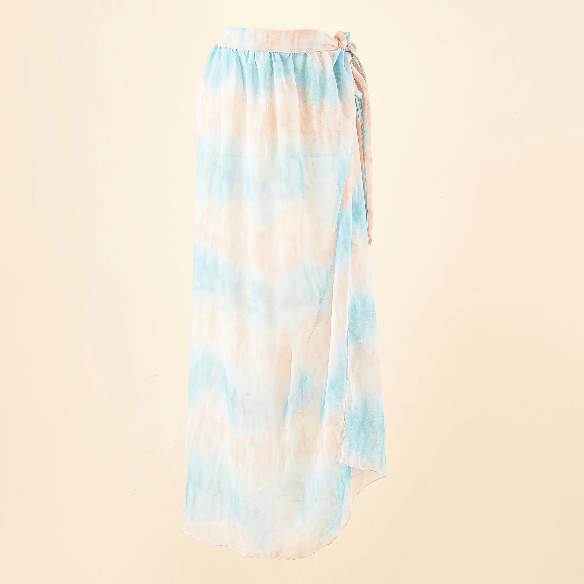 Vacation Chiffon Printed Tie-dye Lace-up Beach Wrap Skirt - Striped