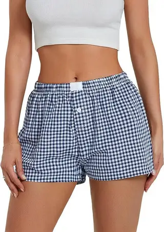Vacation Simple Plaid Beach Shorts Loose Pants -
