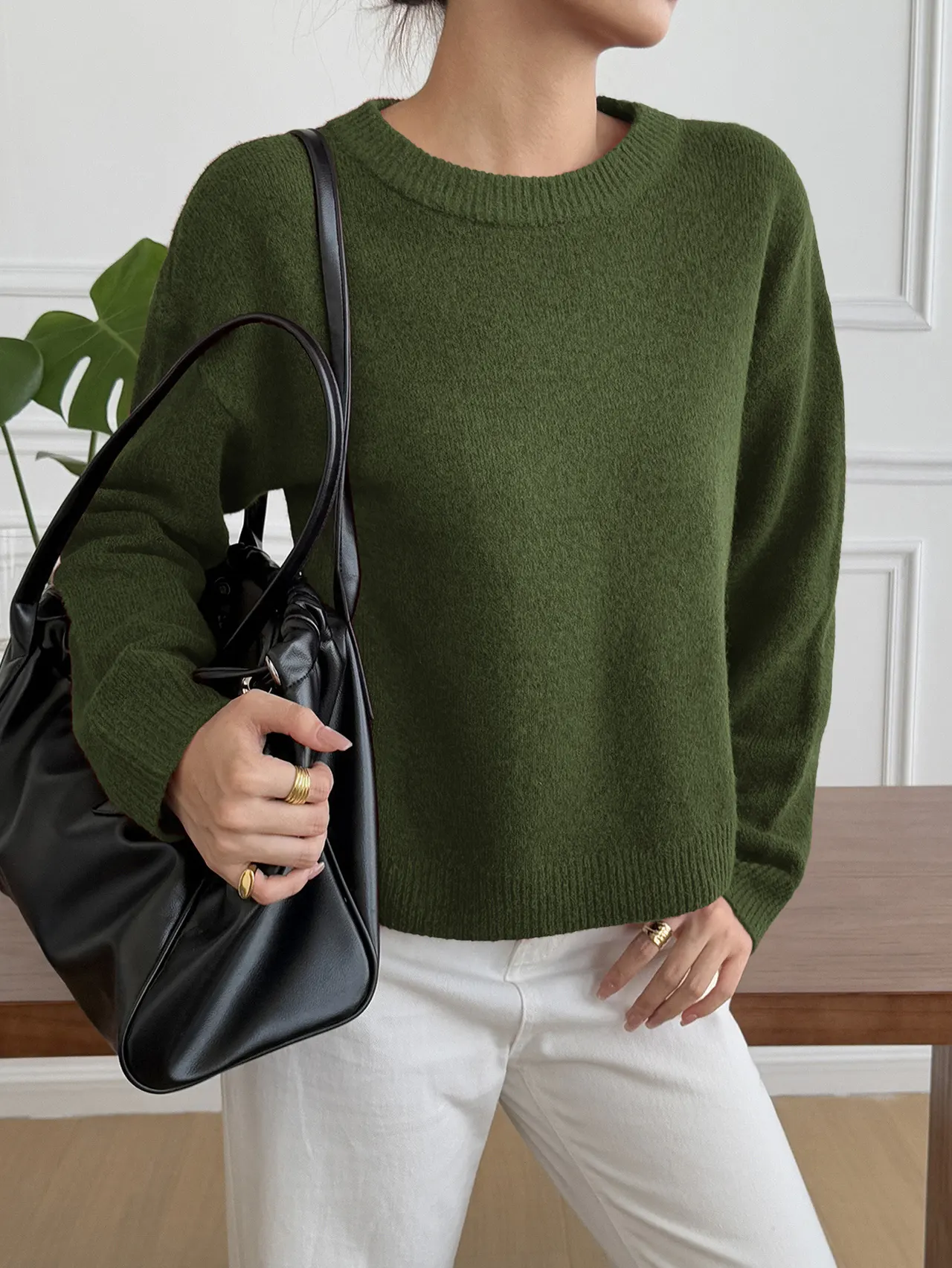 Vacation Solid Color Long Sleeve Wool Sweaters Clothing - Army Green