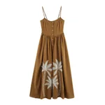 Vacation Style Coconut Tree Embroidered Suspender Skirt - Brown
