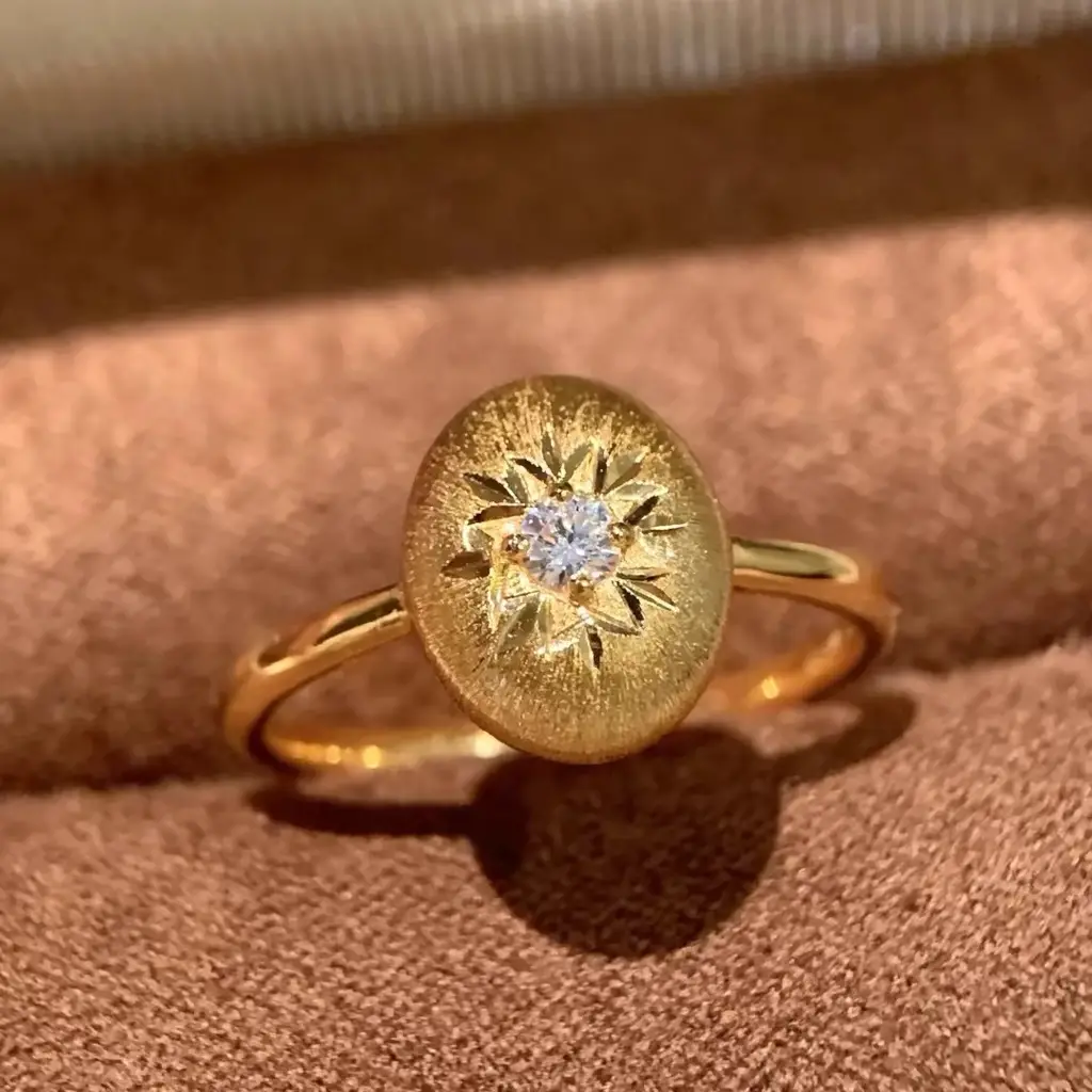 Vintage Brushed Carved Snowflake Wishing Star Ring - Gold