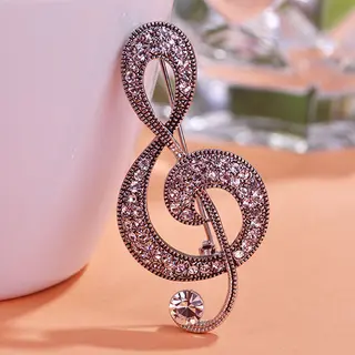 Vintage And Musical Note Brooch - Antisilver Crystal