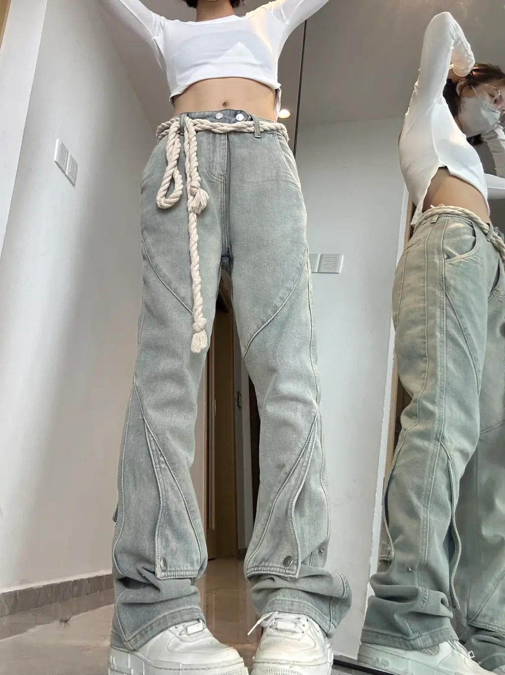 Product Information: Applicable age: 18-24 years old Fabric classification: denim Process: making old and grinding white Color classification: blue black Dimension information: Size: S M L XL Sizecm Waist Foot mouth Pants length S 69 44 103 M 73 46 104.5 L 77 48 106 XL 81 50 107.5 Note 1. Asian sizes are 1 to 2 sizes smaller than European and American people. Choose the larger size if your size between two sizes. differences due to . 2. Please check the size chart carefully before you buy the item, if you don't know how to choose size, please contact our customer service. 3.As you know, the different computers display colors differently, the color of the actual item may vary slightly from the following images. Packing list: Women's pants * 1