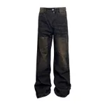 Washed Straight Dirty Mud Textured Deconstructed Jeans - Black