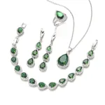 Water Drop Long Necklace Earring Ring Bracelet Ornament Suit - Green