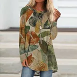 Wear Loose Long Sleeve Digital Printing T-shirt - Leaf Pattern-3xl