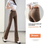 Weila Fleece Padded Jeans Female High Waist Flared Pants - Coffee