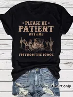 Western Denim Retro Pattern Round Neck Short Sleeve - Black