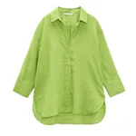 Western Style Loose Linen Shirt With Long Sleeves - Green