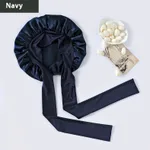 Product information: Pattern: Monochrome Color: black, navy blue, Lake Blue, champagne, cameo Brown, greige, rubber powder Processing Method: tie dyeing Material: Satin Popular elements: light body Style: All-matching Packing list: Sleeping cap * 1 Product Image: