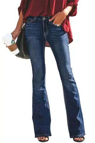 Wide-leg Flared Jeans - Blue 1