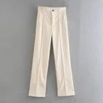 Wide Tube Slim Pu Leather Straight Trousers - Beige