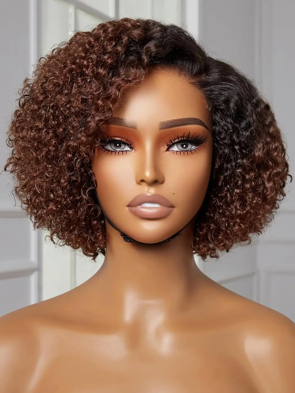 Wig Synthetic Cap Brown Side-parted Short Curly Hair African Curls -