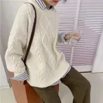 Wind Pullover Loose Round Neck Thick Hemp Flowers Knitted Outerwear