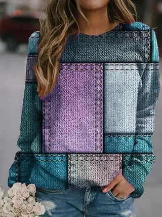 3d Digital Floral Print Long Sleeve Pullover - U