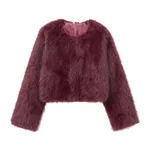 Artificial Leather Fur Coat Short Coat - Wine