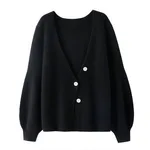 Product information: Pattern: solid color Color: white, gray, black, pink, khaki Size: free size Version: Loose Combination form: Single piece Popular elements: Button Style: Cardigan Thickness: medium Fabric name: knitted Sleeve type: Lantern sleeve Main fabric composition: acrylic fiber Wearing style: Cardigan Sleeve length: long sleeve Process: high temperature stereotypes Packing list: Women's sweater x1 piece Product Image: