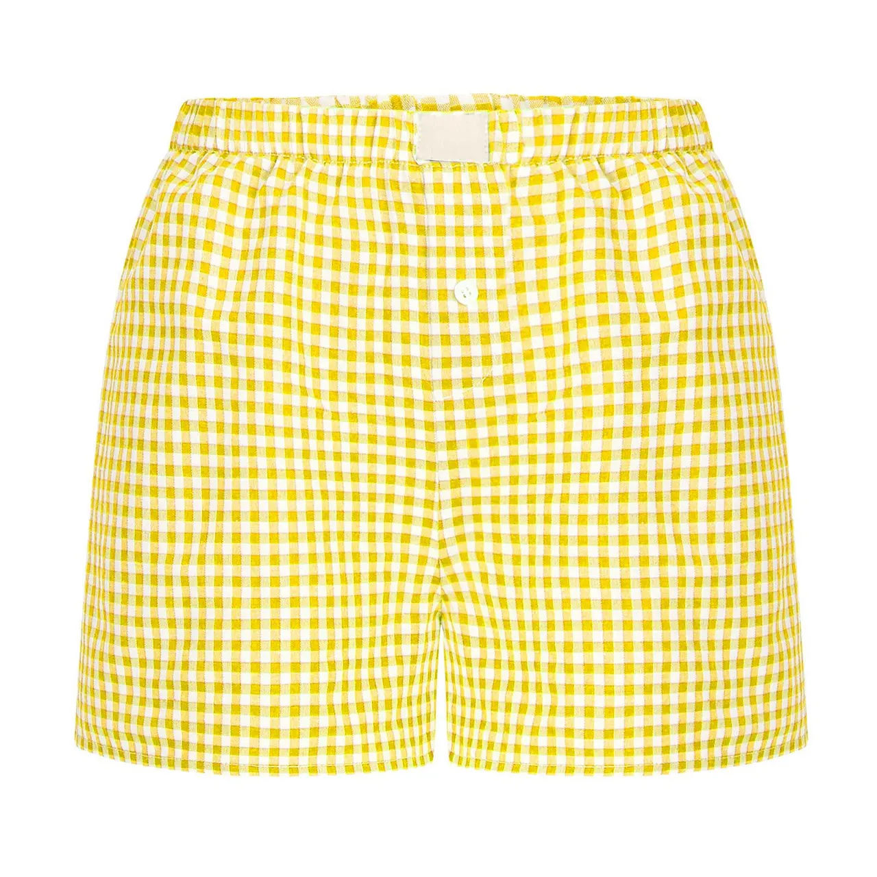 Plaid Cotton Arrow Pants Loose Four-corner Button Shorts - Yellow