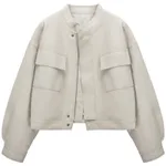 Small Stand Collar Coat Leather Jacket - White