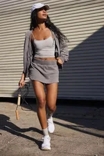 Solid Color Long Sleeve Hooded Jacket Skirt Outfit - Gray