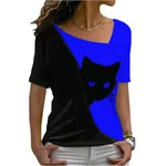Cat Printing Top Short Sleeve - Sapphire Blue