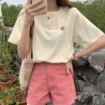 Cotton Orange Embroidered Short-sleeved T-shirt - Light Yellow