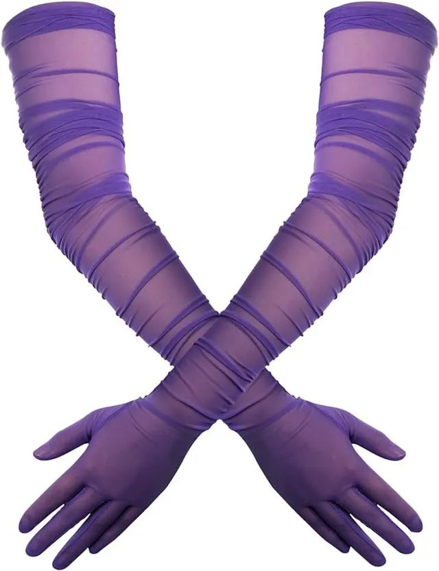 Long Opera Gloves Mesh Gauze - Purple