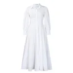 Long Sleeve Big Hem Shirt Solid Color Dress - White