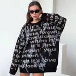 Loose Contrast Color Letter Embroidered Top - Ls2832 Black