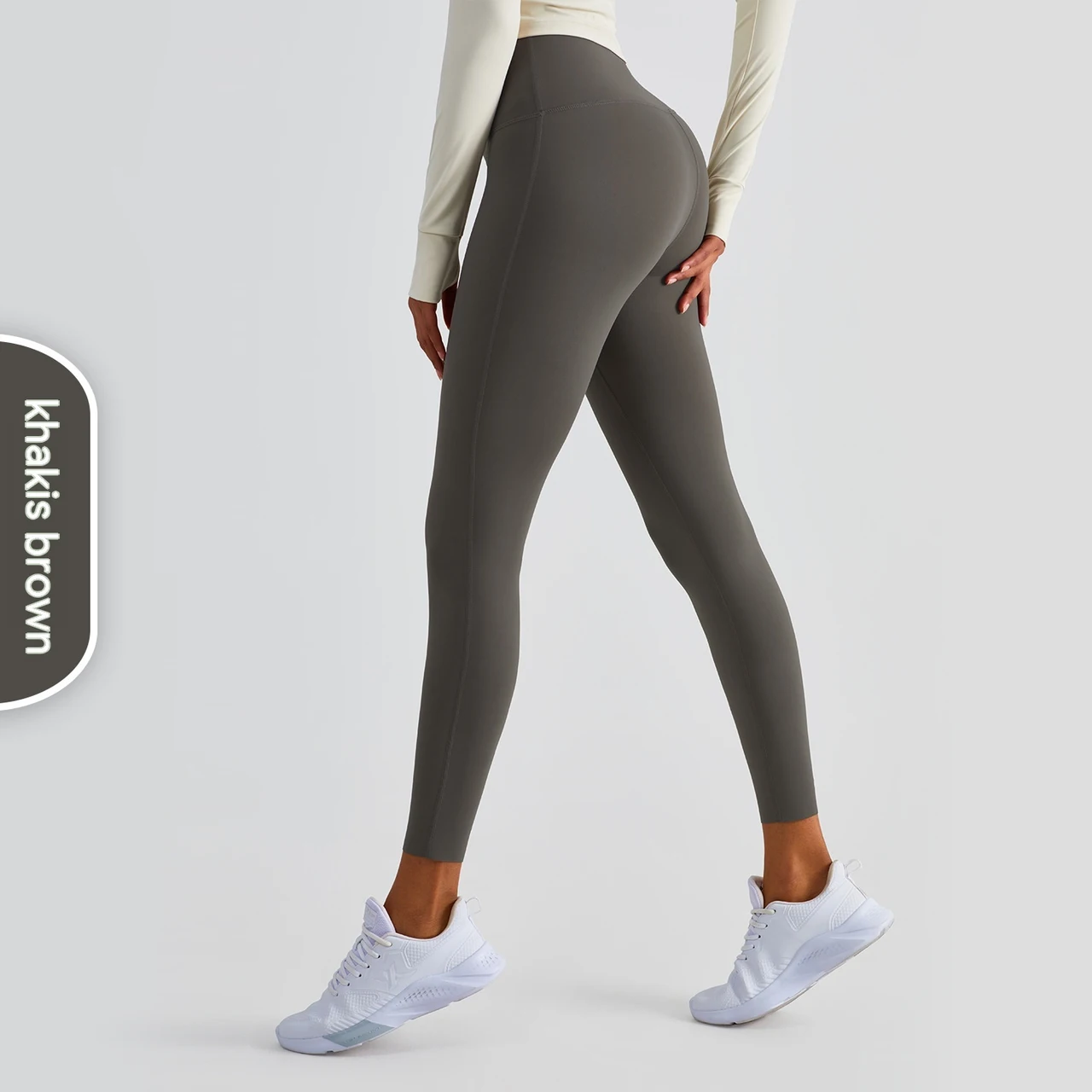 Solid Color High Waist Hip Lift Yoga Pants - Kaki Brown