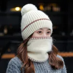 Embroidered Warm Scarf Sweater Hat Set - Beige
