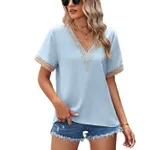 Simple Lace V-neck Patchwork Solid Color Underwear Top - Blue
