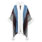 Fur Collar Inverness Striped Ethnic Style - Coffee