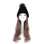 Hat Wig Detachable Woolen Cap - Black Hat Thin