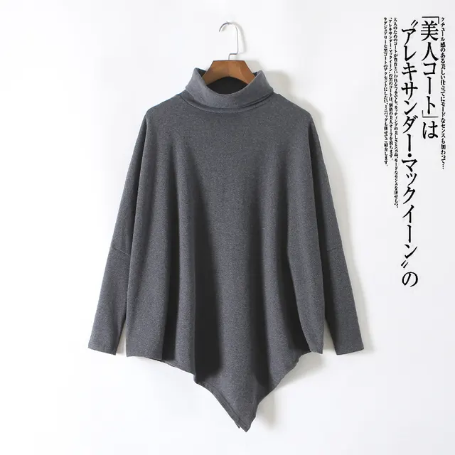 Product Information: Fabric name: wool stretch cotton Main fabric composition: cotton The content of main fabric ingredients: 81%-90% Main fabric composition 2: viscose The content of main fabric ingredient 2: 10% or less Lining composition: cotton Lining ingredient content: 81%-90% Edition type: Loose Collar type: high collar Sleeve type: Bat sleeve Popular elements: irregular Size Information Size:One size size Length Short place bust Suggested range One size 80 63 156 90-180jin Note 1. Asian sizes are 1 to 2 sizes smaller than European and American people. Choose the larger size if your size between two sizes. differences due to . 2. Please check the size chart carefully before you buy the item, if you don't know how to choose size, please contact our customer service. 3.As you know, the different computers display colors differently, the color of the actual item may vary slightly from the following images. Packing list Sweater x1