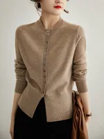 Knitted Cardigan And Winter Chanel Style Sweater - Camel