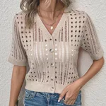 Product information: Thickness: thin Fabric Name: ice linen Color: apricot, black, white Sleeve type: raglan sleeve Main fabric composition: Polyester (polyester fiber) Size: S,M,L Version: Regular Length: Short (40cm Style type: temperament commute Sleeve length: half sleeve Popular elements: Buttons Style: Cardigan Style: Elegant style Craft: Hollow Note: 1. Asian sizes are 1 to 2 sizes smaller than European and American people. Choose the larger size if your size between two sizes. differences due to . 2. Please check the size chart carefully before you buy the item, if you don't know how to choose size, please contact our customer service. 3.As you know, the different computers display colors differently, the color of the actual item may vary slightly from the following images. Packing list: Jacket*1 Product Image:
