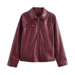 Product information: Fabric name: imitation leather Color: wine red Size: S,M,L Applicable Gender: Female Sleeve length: long sleeve Popular elements: zipper Craft: fold Size: Note: 1. Asian sizes are 1 to 2 sizes smaller than European and American people. Choose the larger size if your size between two sizes. differences due to . 2. Please check the size chart carefully before you buy the item, if you don't know how to choose size, please contact our customer service. 3.As you know, the different computers display colors differently, the color of the actual item may vary slightly from the following images. Packing list: Coat X1pcs Product Image: