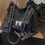 Product information: Style: Commuting Material of lining: polyester Closing method: cover type Style: Shoulder bag Backpack method: single shoulder crossbody carrying Color classification: Silver, Off white, Black, Pink Popular element: sewing thread Type of outer bag of luggage: inner patch bag Luggage hardness: soft Popular style name: Tote bag Texture: PU Material and technology: Soft surface Internal structure: No inner bag Pattern: Solid color Packing list: Shoulder bag * 1