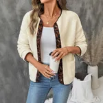 Leopard Print Contrast Color-side Cardigan Thickened Polar Fleece