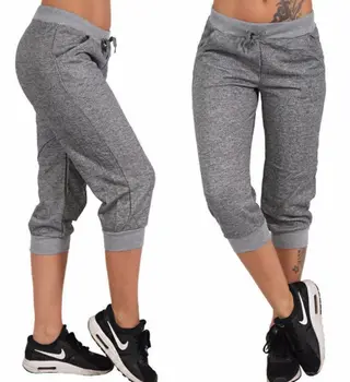 Loose Sports Pants Solid Color Thin Cropped Pants - Grey