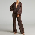 High Elastic Pleated Waist Deep V Wide-leg Pants Two-piece Set -