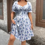 Product information: Pattern: Floral Fabric Name: Polyester Skirt Type: A-line Color: White Size: 0XL, 1XL, 2XL, 3XL, 4XL Gender: Female Packing list: Ladies' dress *1 Product Image: