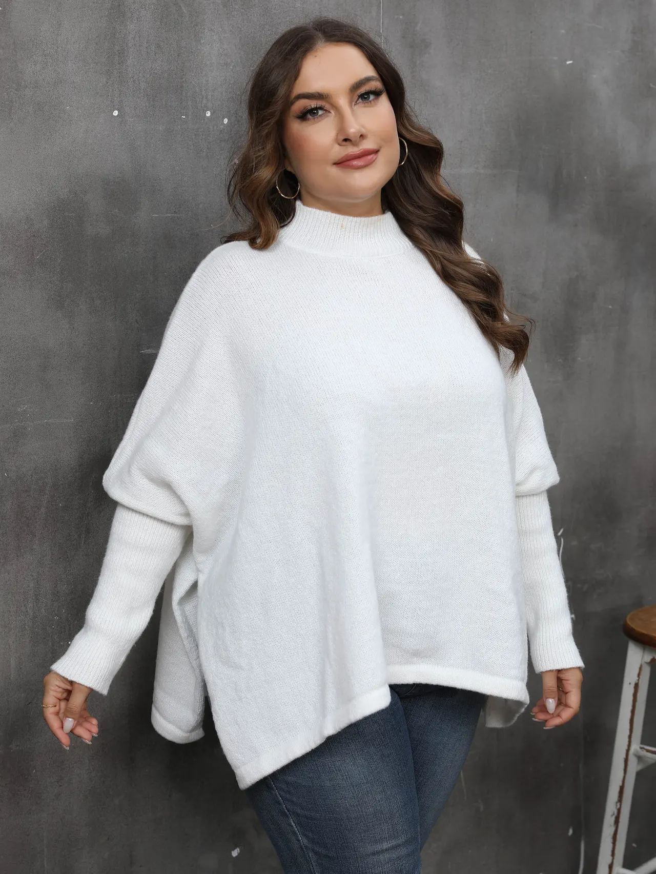 Pullover Loose Split Batwing Sleeve Half Collar